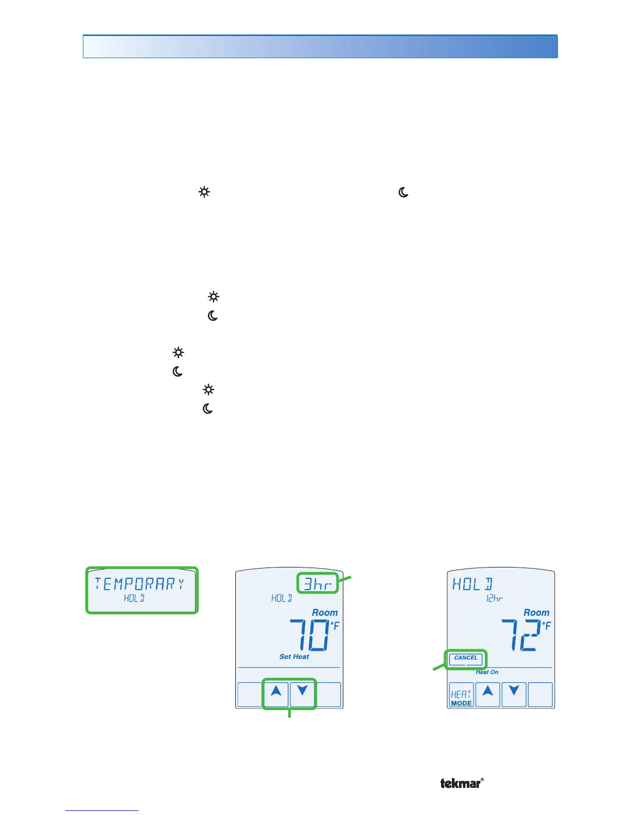 the next schedule event time. After the temporary hold time expires, the thermostat