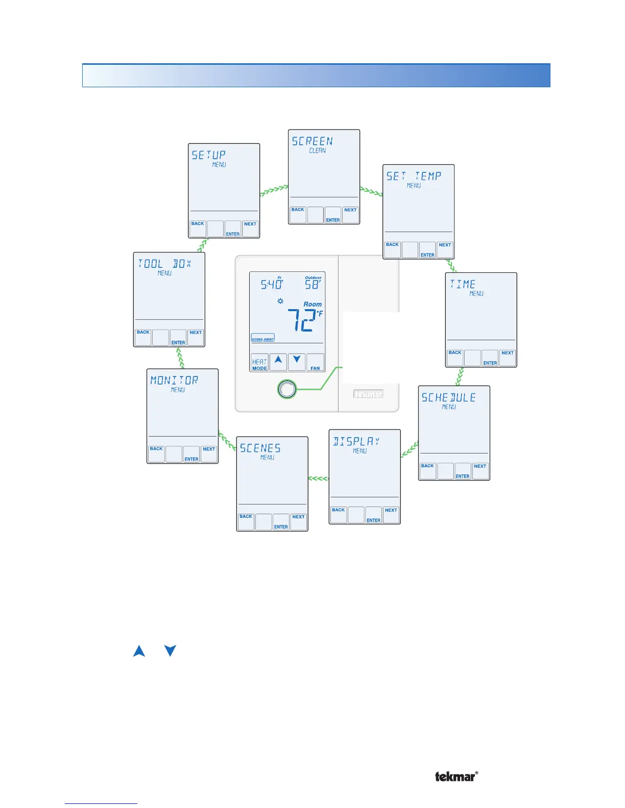 Touch “NEXT” to advance (clockwise in above illustration) to the next menu.