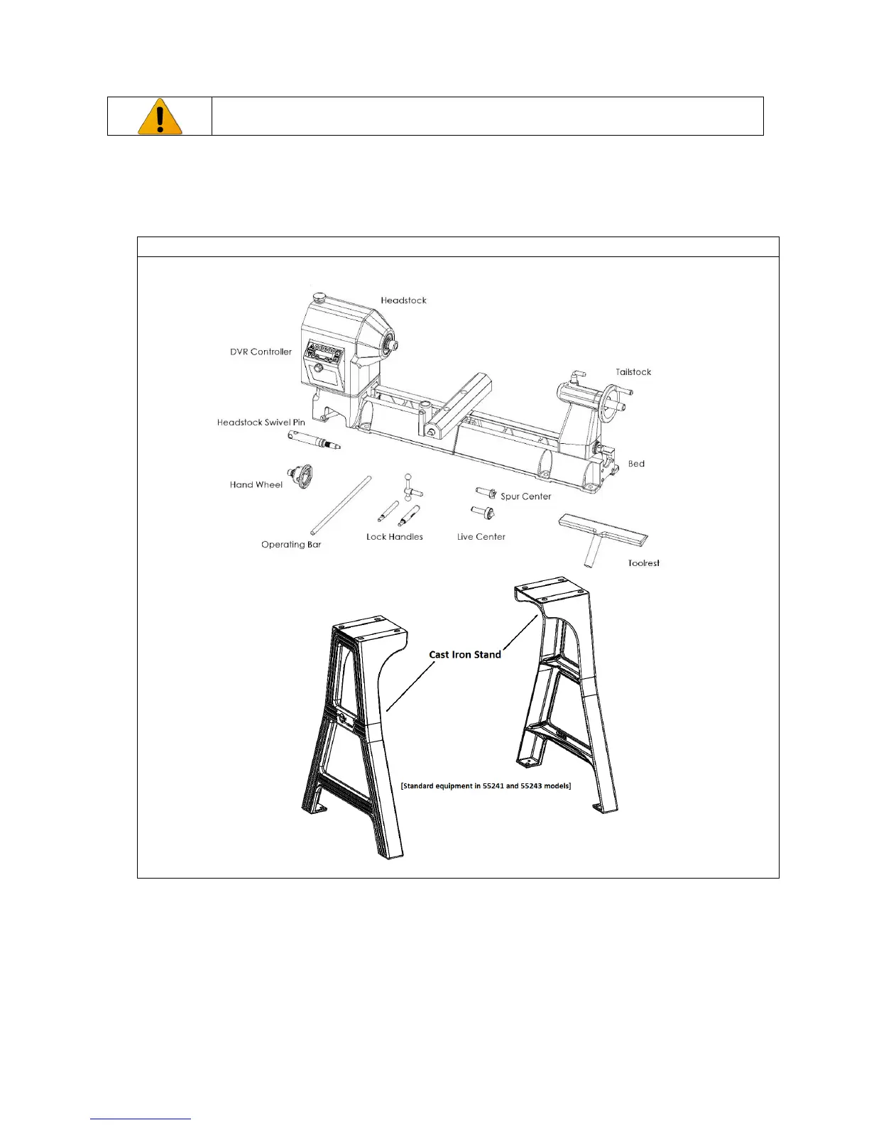 its parts. DO NOT CONNECT POWER ON LATHE UNTIL FULLY ASSEMBLED.