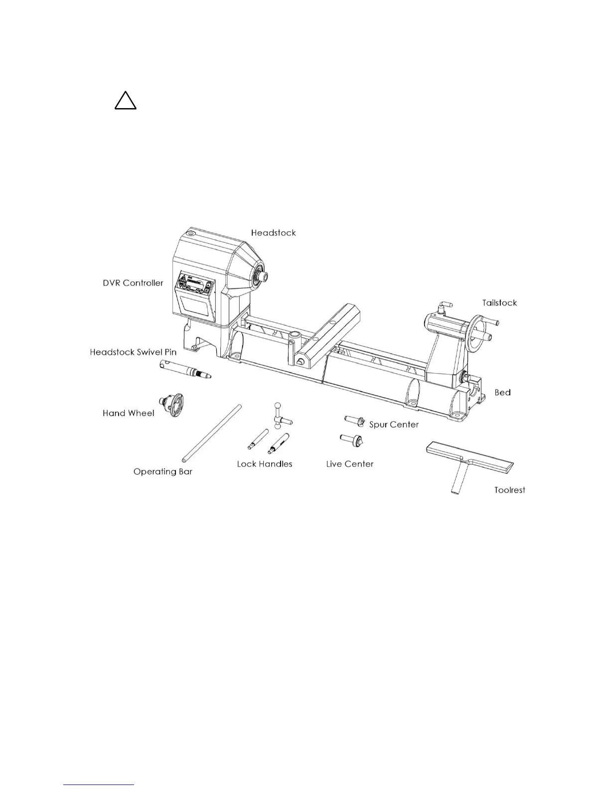 1. Unpack the lathe and components from the shipping container. This is best done by cutting down