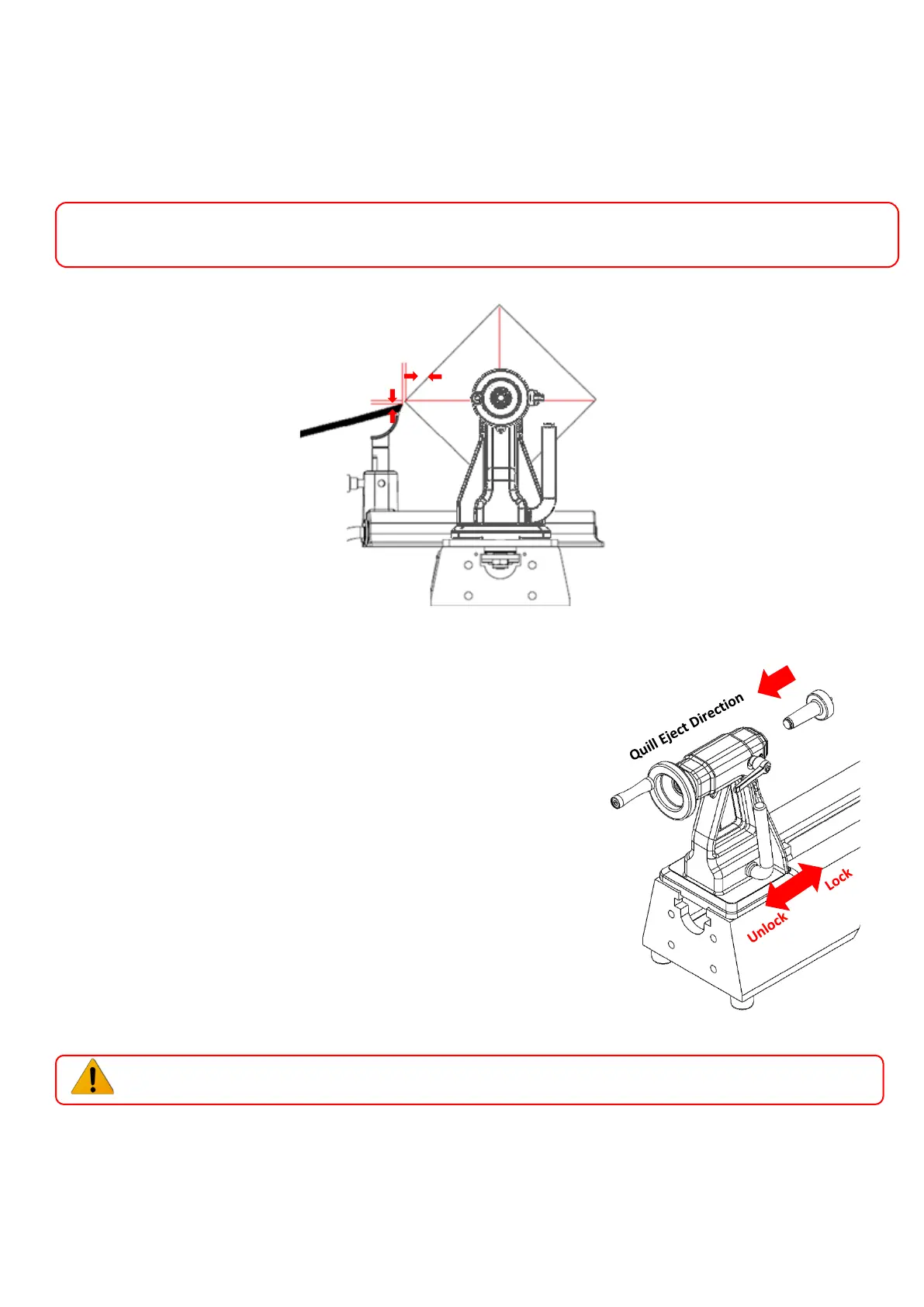 WARNING! Never loosen the Tailstock Quill or Tailstock while the work piece is turning.