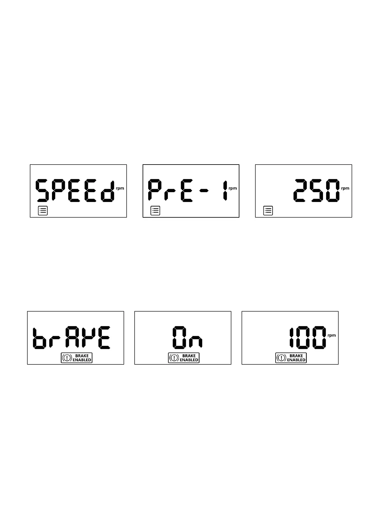 To save a new speed, once the speed slot number confirmed, adjust desired RPM and press [Down & Hold] the