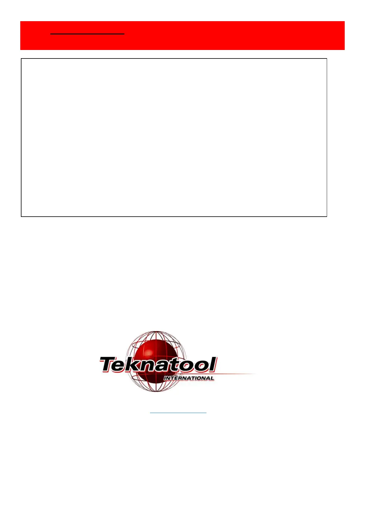 product. No other guarantee, written or verbal is authorized by Teknatool International Ltd.