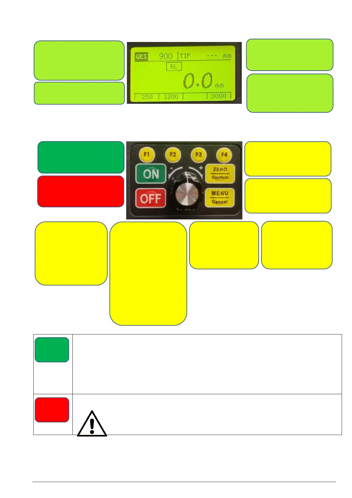 The <ON> and <OFF> buttons only switch the motor on and off. The pre-set speed