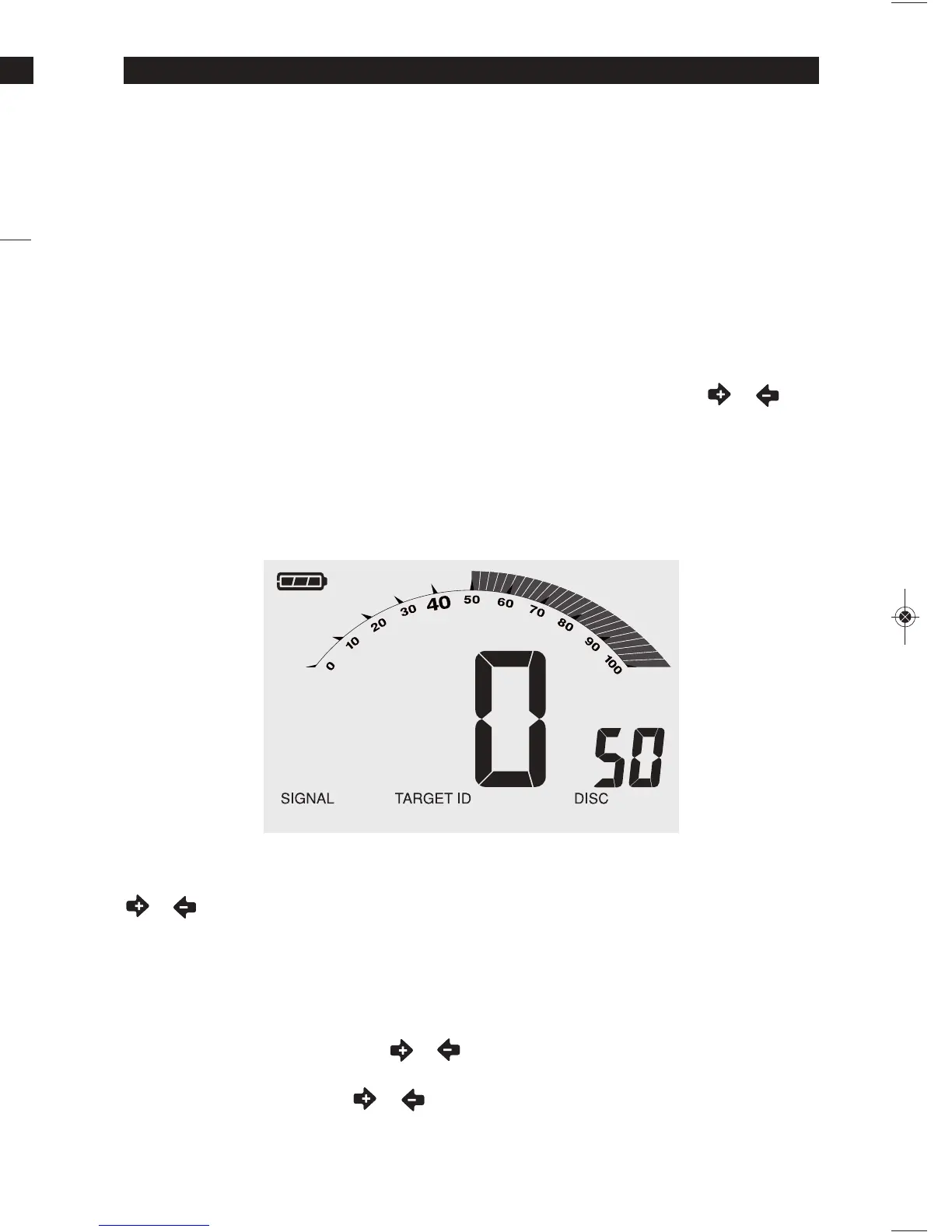 The approximate target depth, in inches, will be indicated in the center of the screen.