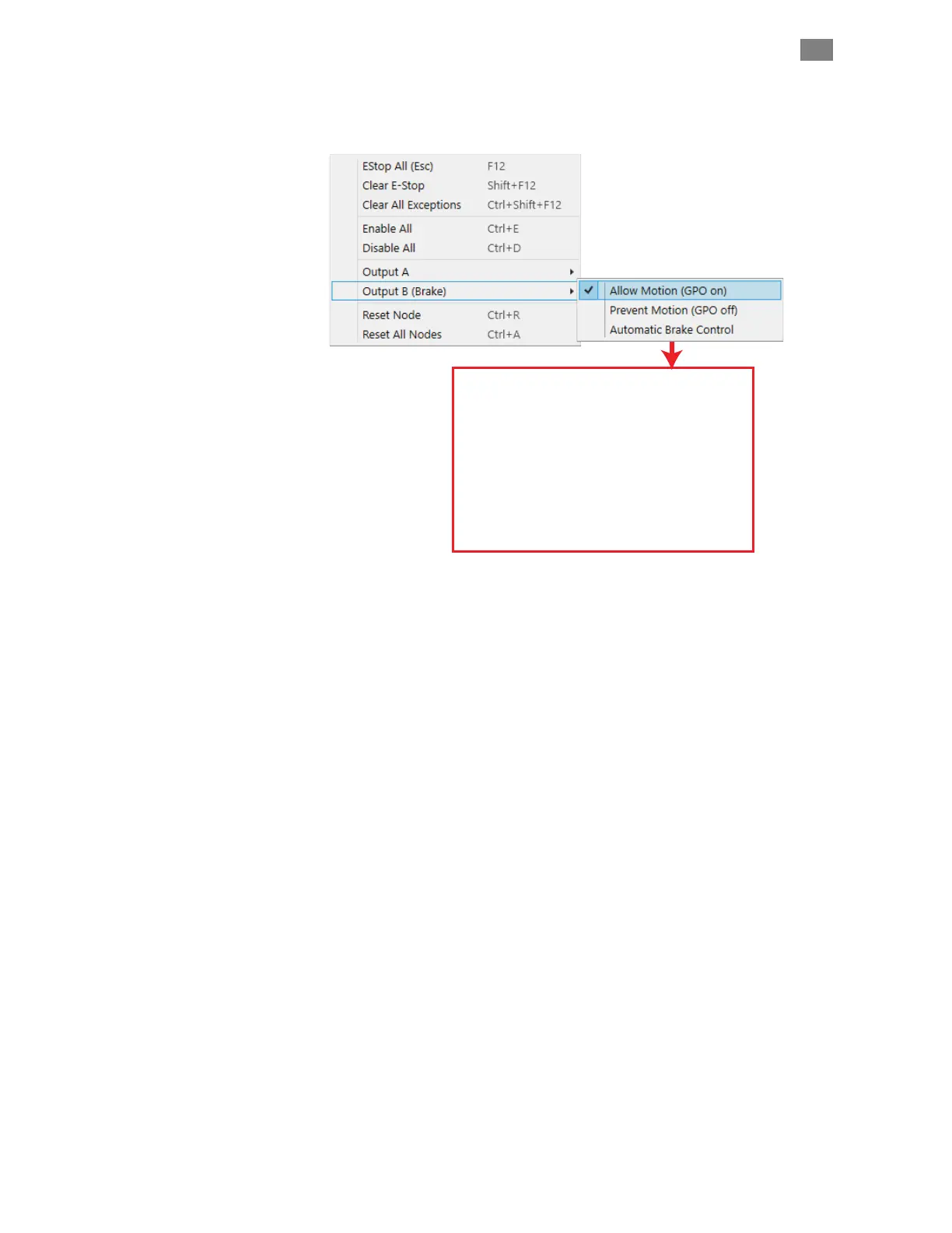 Output B (Brake). Lets the user manually control a brake (if Output B is