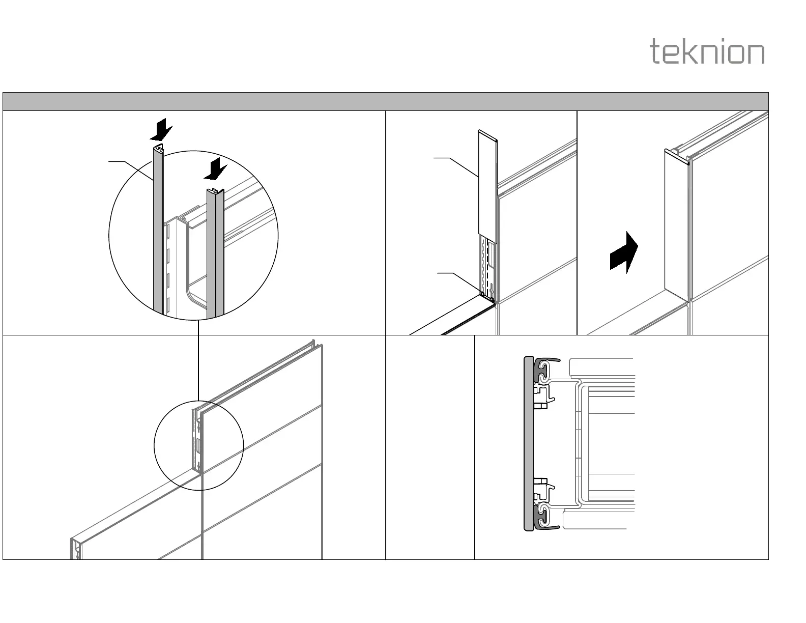 STEP 7: Slide Gaskets into Panel Slots, place the Intermediate End Trim onto the Connecting Pin and snap into the Panel.