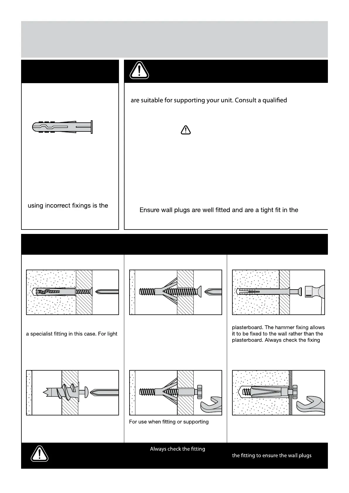 Make sure that the screws and wall plugs being used