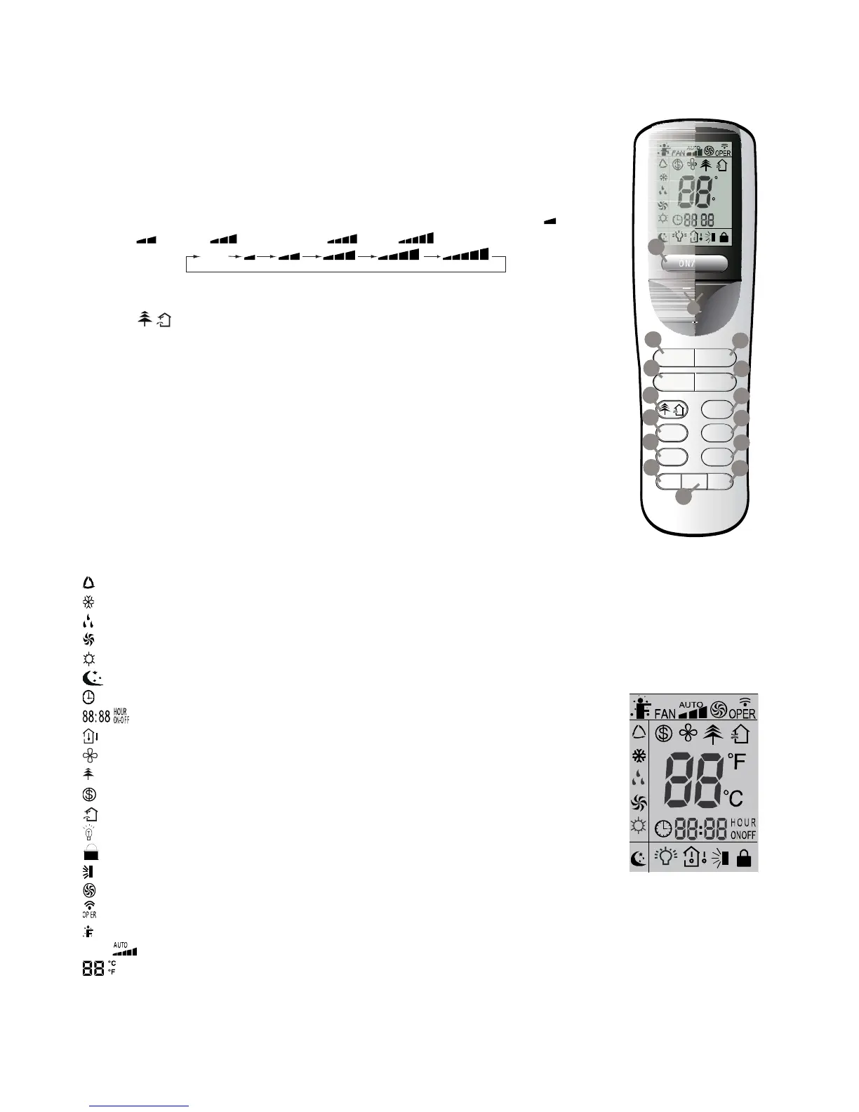 15) Tasto X-FAN consente di avviare / arrestare il ventilatore interno, questa funzione si