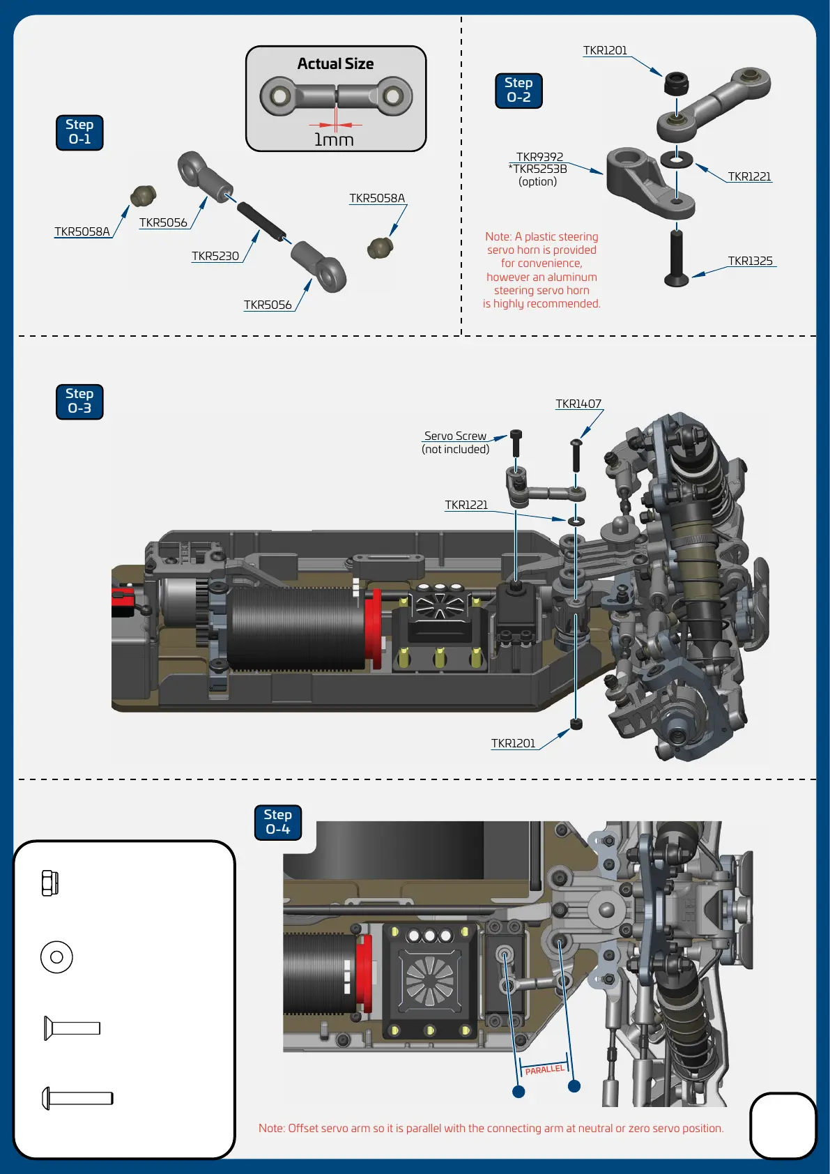 Note: Oset servo arm so it is parallel with the connecting arm at neutral or zero servo position.