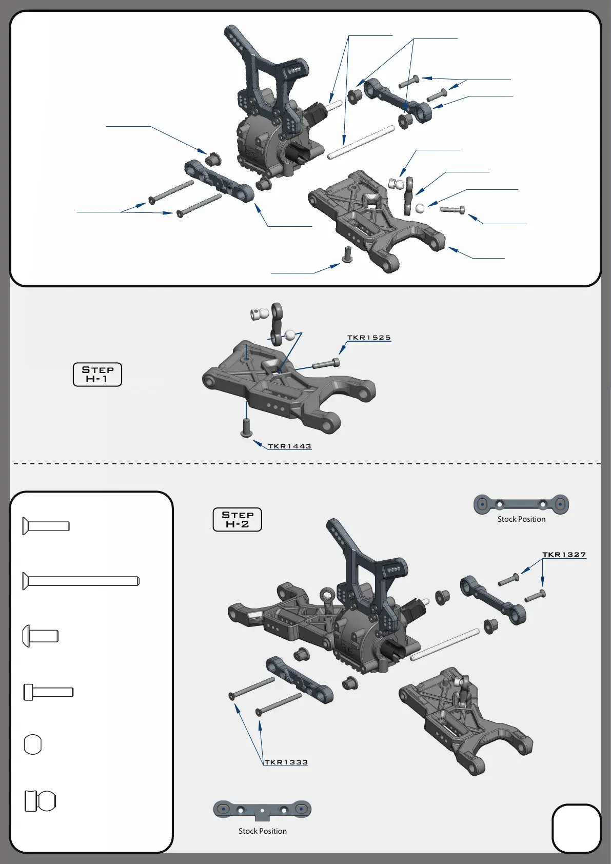 Tekno RC EB48 - Bag H: Front Suspension Assembly; Front Suspension Components; Front Suspension Assembly Steps