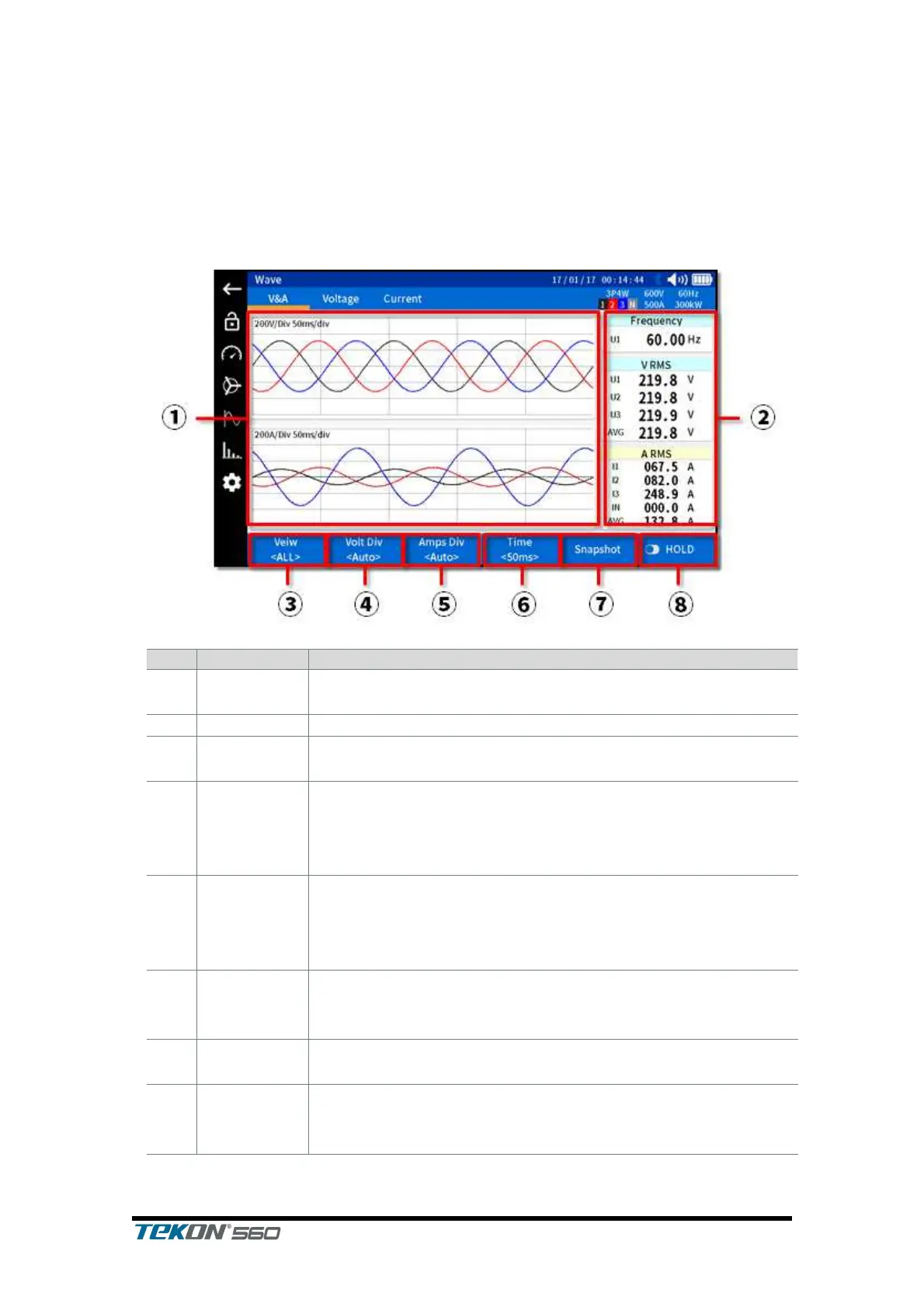 This is a screen enabled to check waveforms of voltage and current in real time.