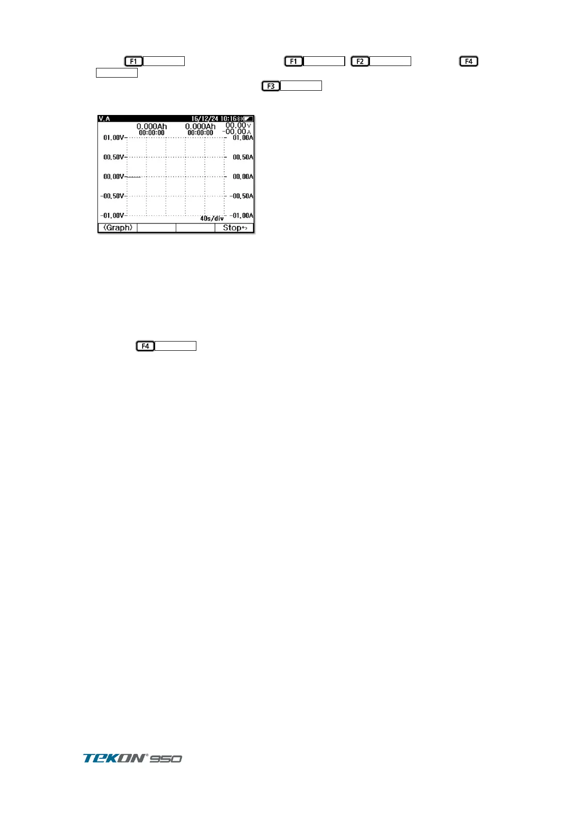 shows the measured values instead of the graph. Charge the fully discharged battery and