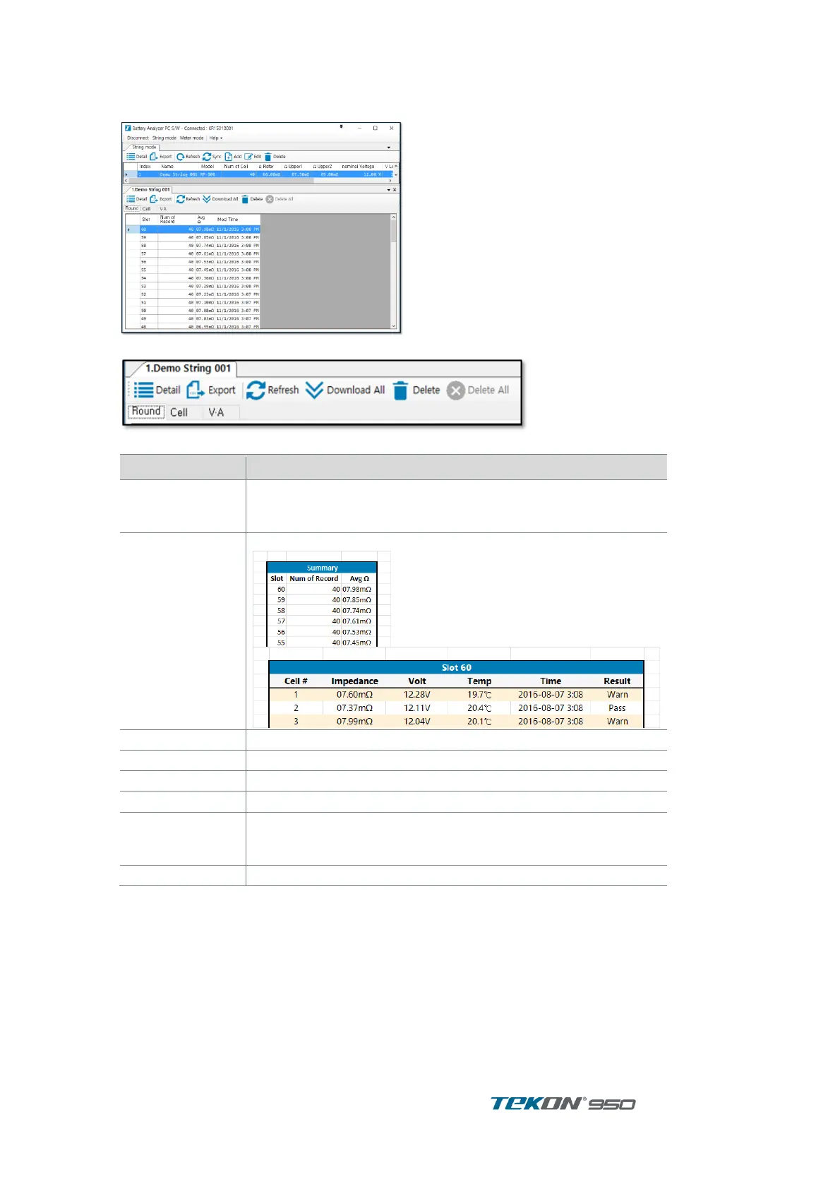 Press ‘ Detail “ button in String list to display information ’