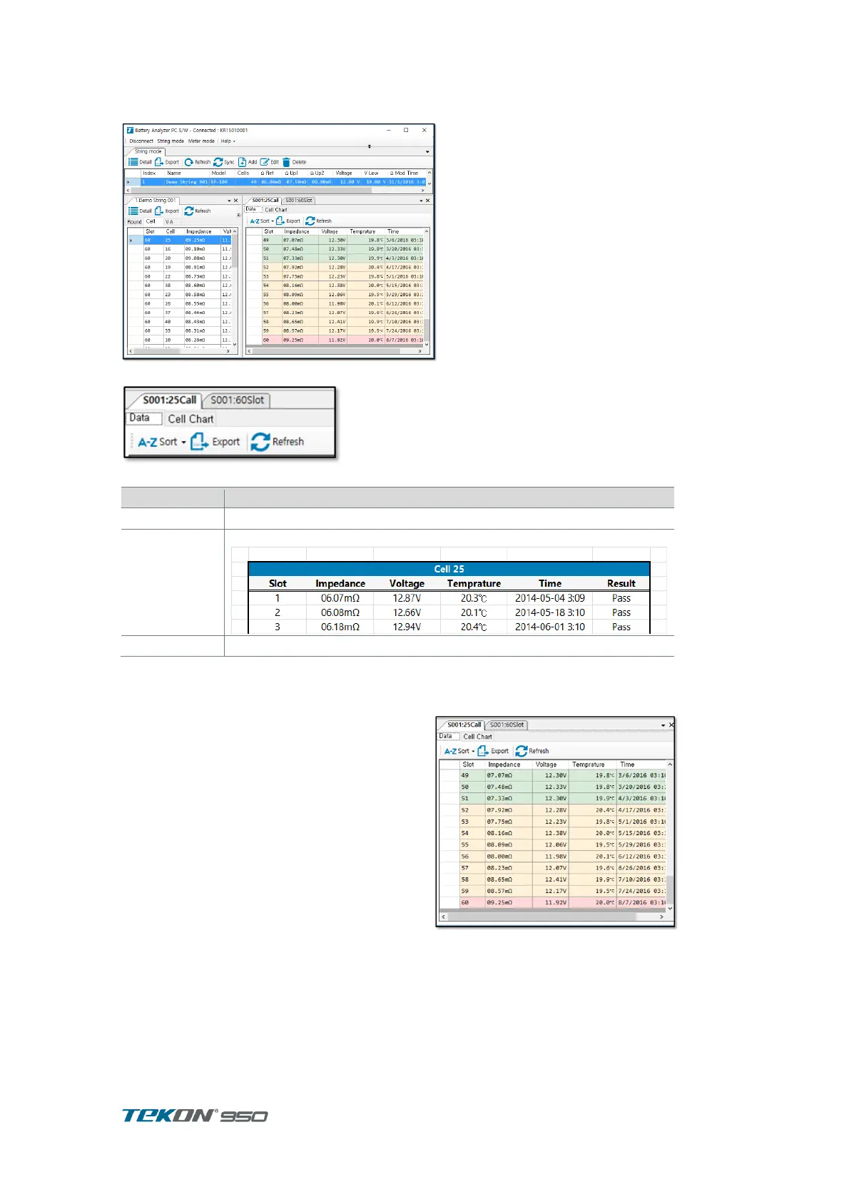 Cell Record displayed in Chart. Can check change of Impedance and Voltage