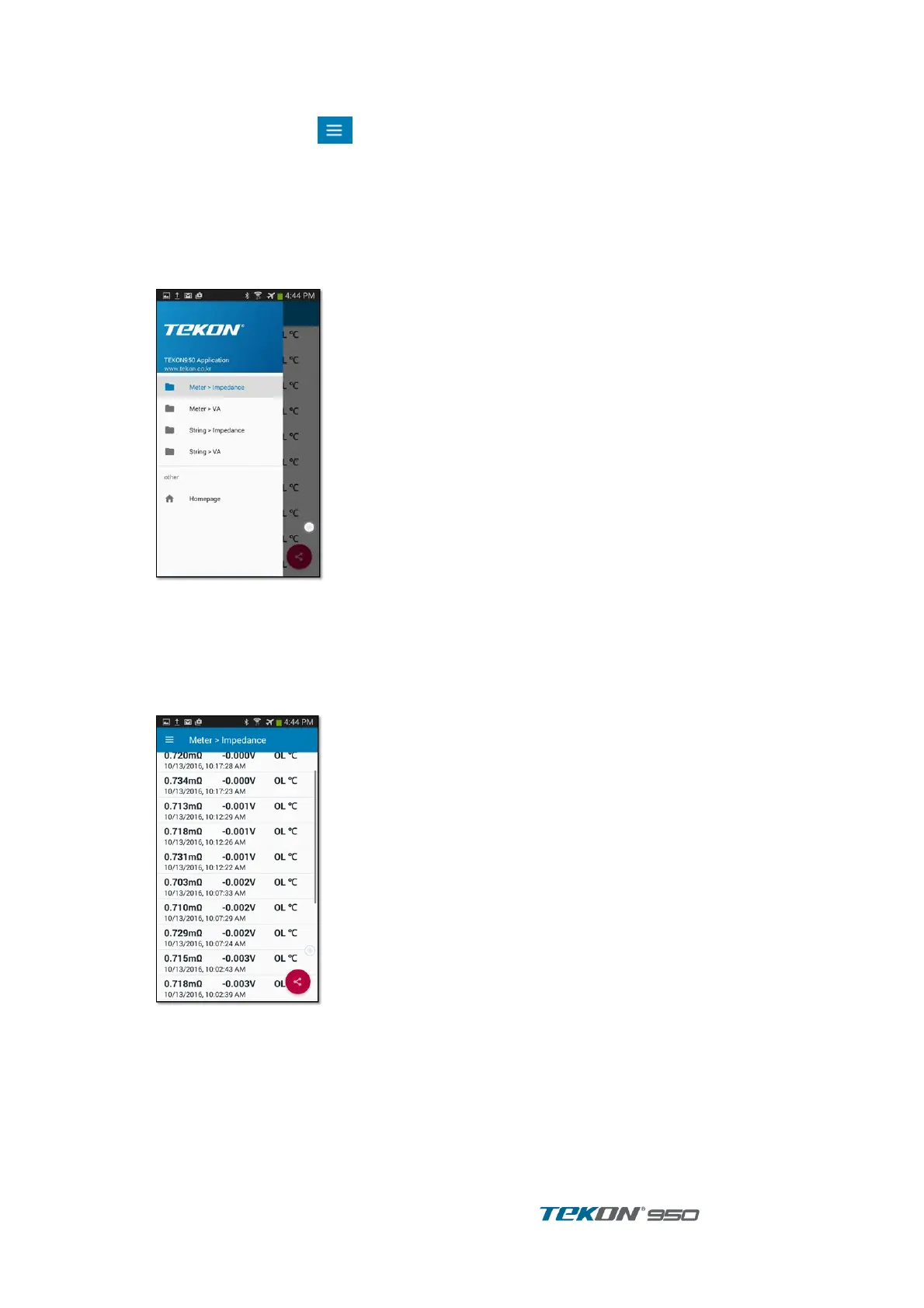 Meter - Impedance records are displayed in reverse order of measurement time.