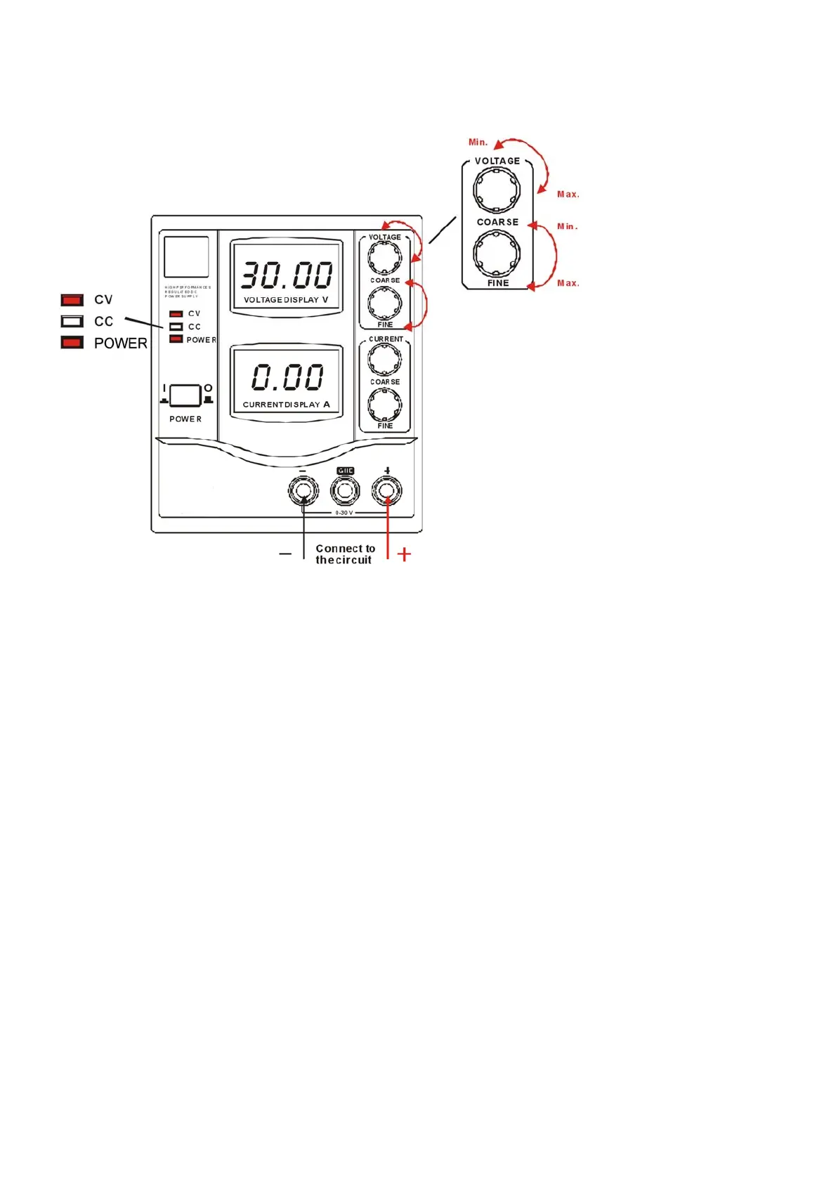 4. Use the VOLTAGE COARSE TUNE KNOB [8] and VOLTAGE FINE TUNE KNOB [9] to adjust and