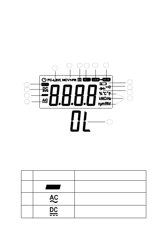 LCD screen is shown as in Figure 2-2, with its every symbol’s