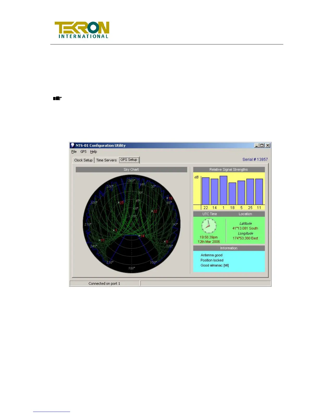 The GPS Set-Up Page shows the current status of the GPS receiver in NTS01. It is also possible