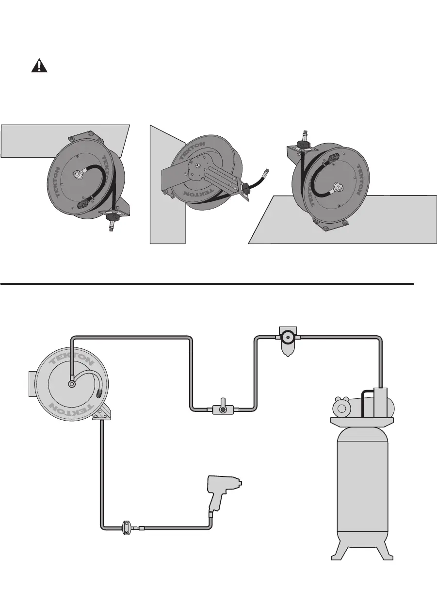 forces caused by pulling or manuevering hose. Mounting reel near air compressor may be desirable since you can connect