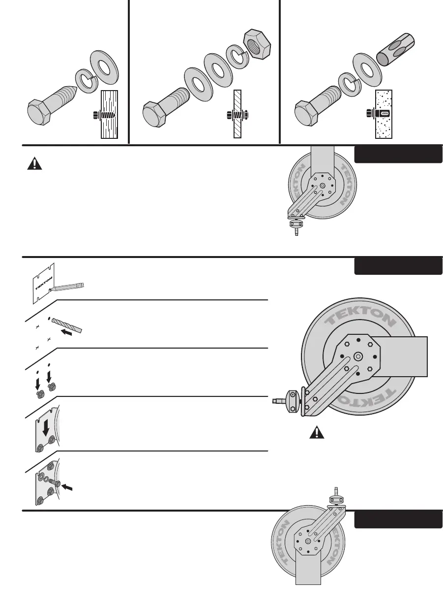 ATTEMPT TO MOUNT HOSE REEL TO CEILING BY YOURSELF. USING