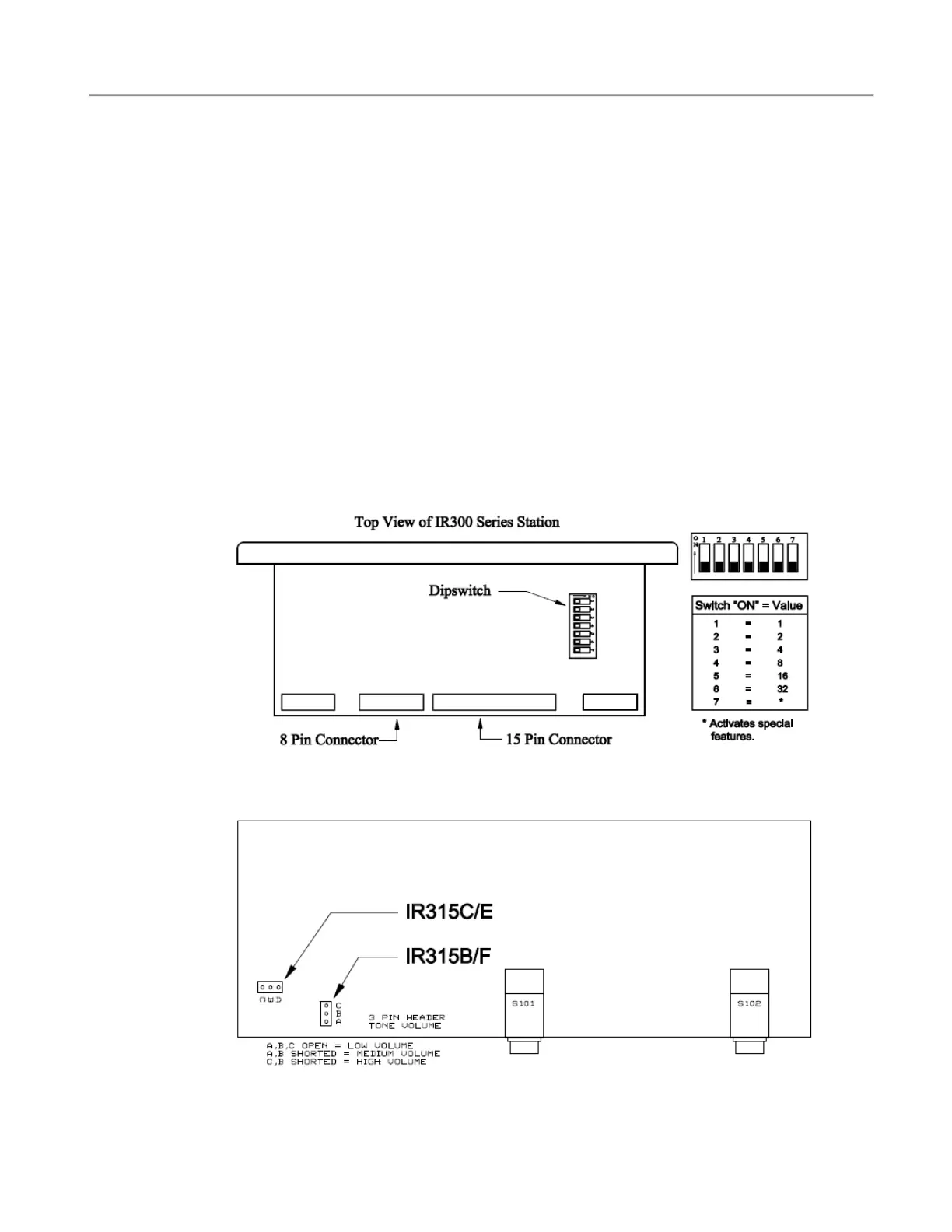 Figure 7 - IR3xx-series Stations Dip Switch Location and Switch Values