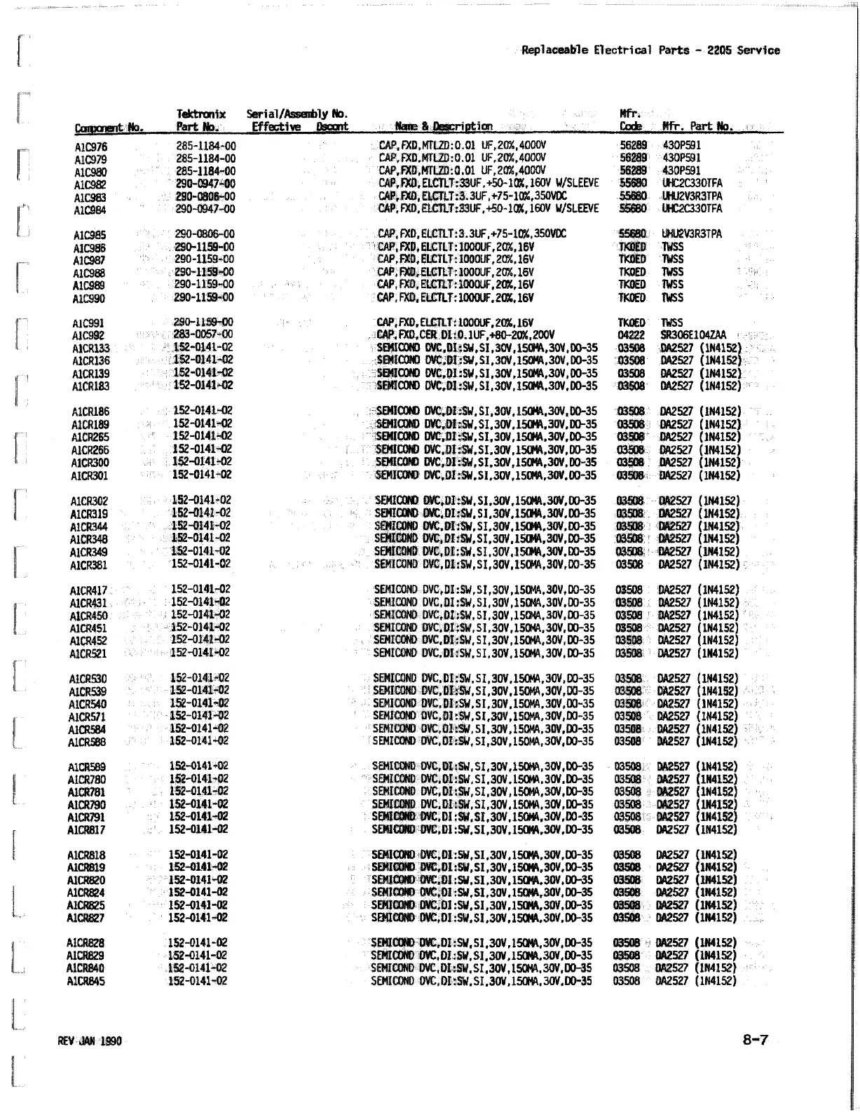 Replaceable E le c tric a l P a rts - 2205 S ervice