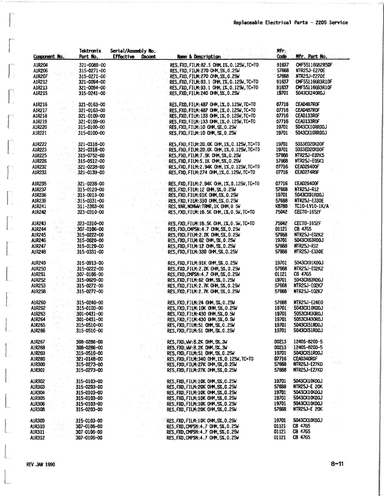 A1R206 315-0271-00 RES.FX0.FILM:270 0HM,5%,0.25W