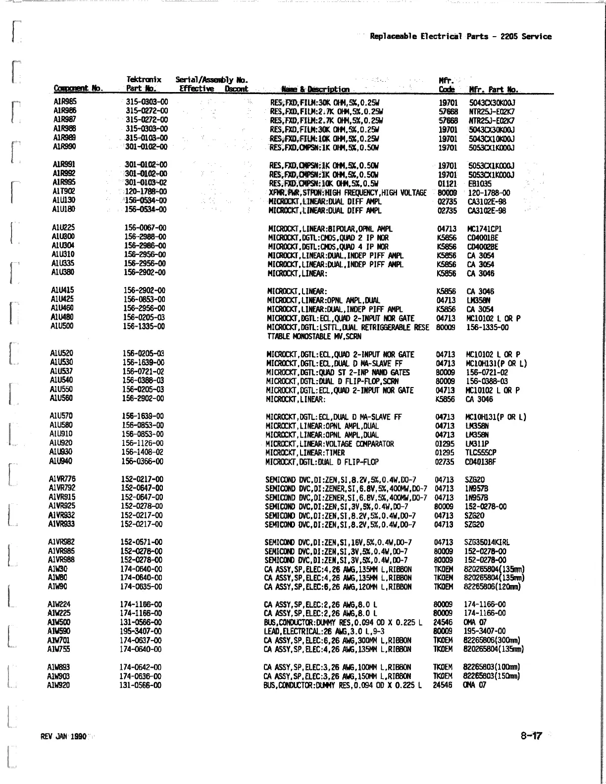 Replaceable E le c tric a l F a rts - 2205 S erv ice
