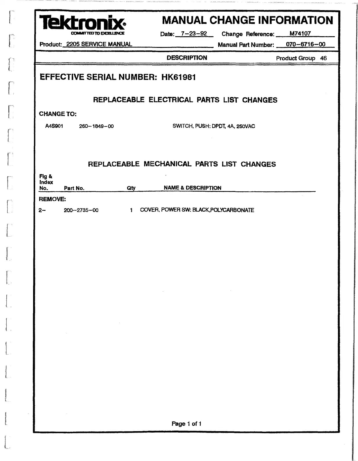 Date: 7 -2 3 -9 2 Change Reference: M74107