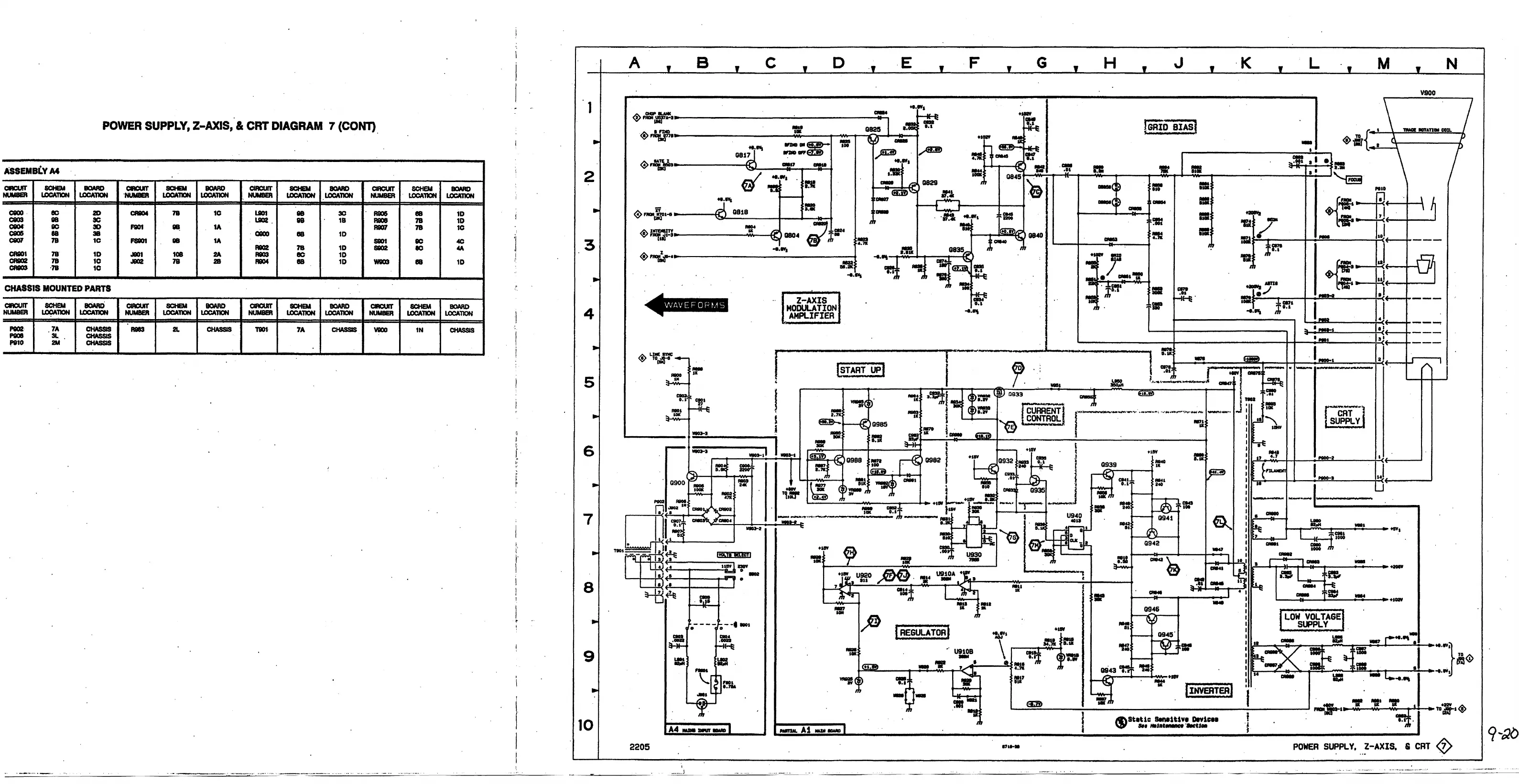 POWER SUPPLY, Z-AXIS, & CRT DIAGRAM 7 (CONI)