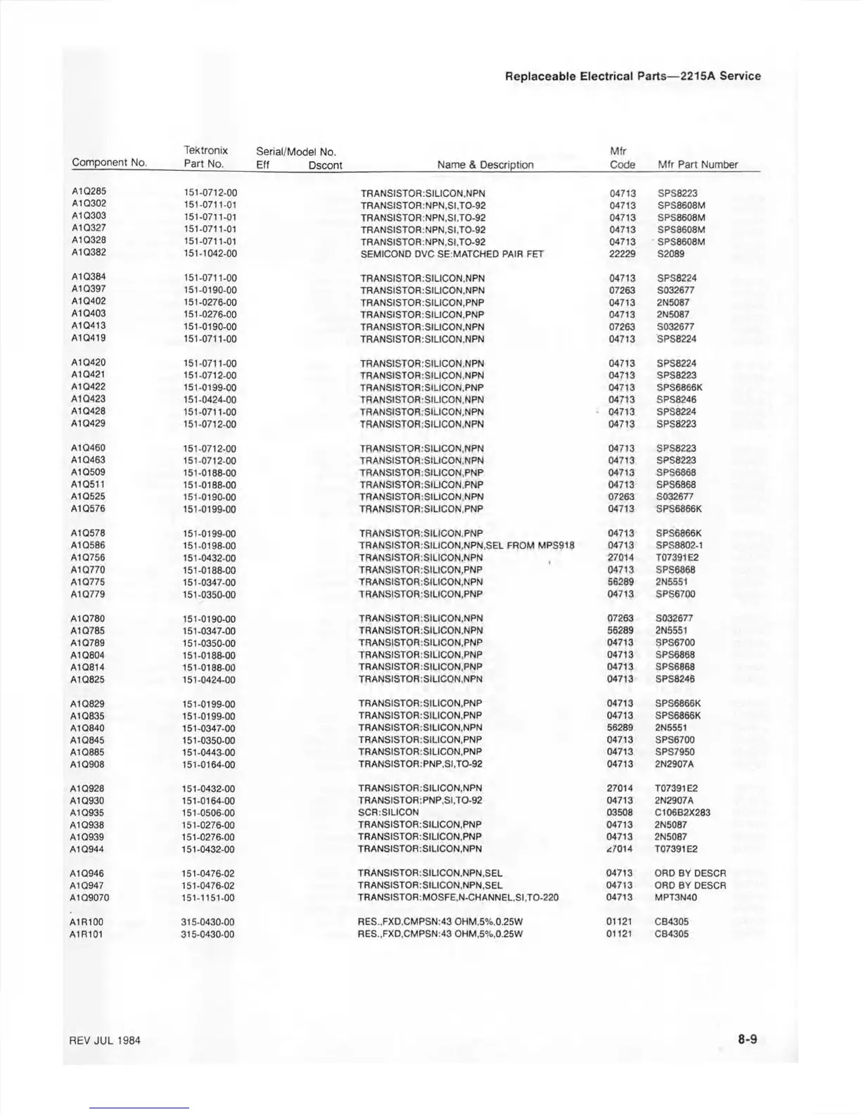 151-0190-00 TRANSISTOR.SILICON.NPN 07263