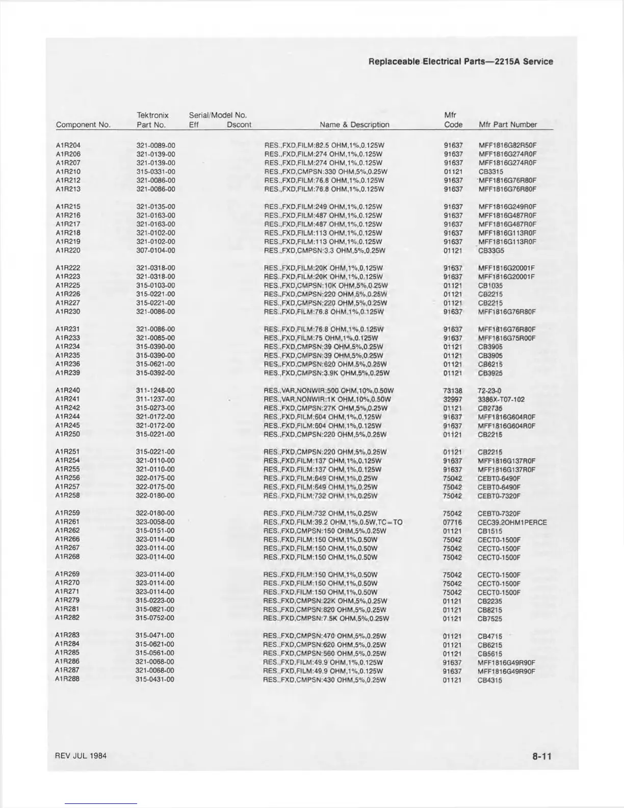 A1R218 321-0102-00 RES.,FXD,FILM: 113 OHM.1%,0.125W 91637
