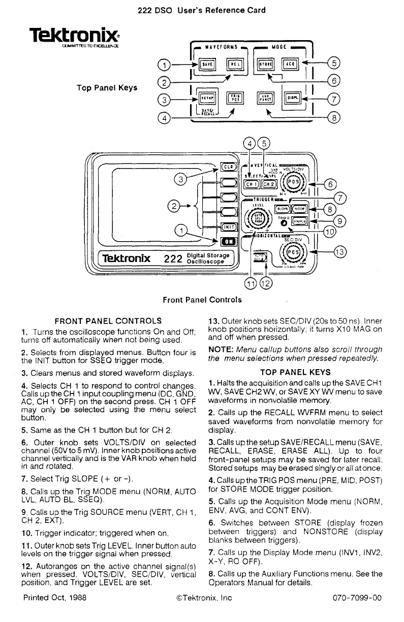 Printed Oct, 1988 GTektronix, Inc 070-7099-00