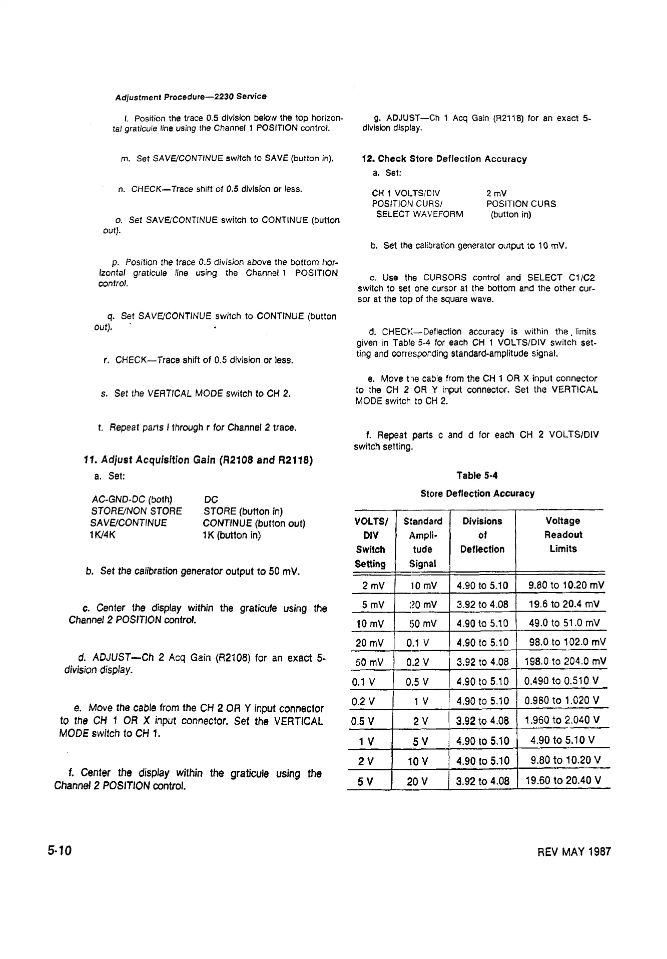 given in Table 5-4 for each CH 1 VOLTS/DIV switch set