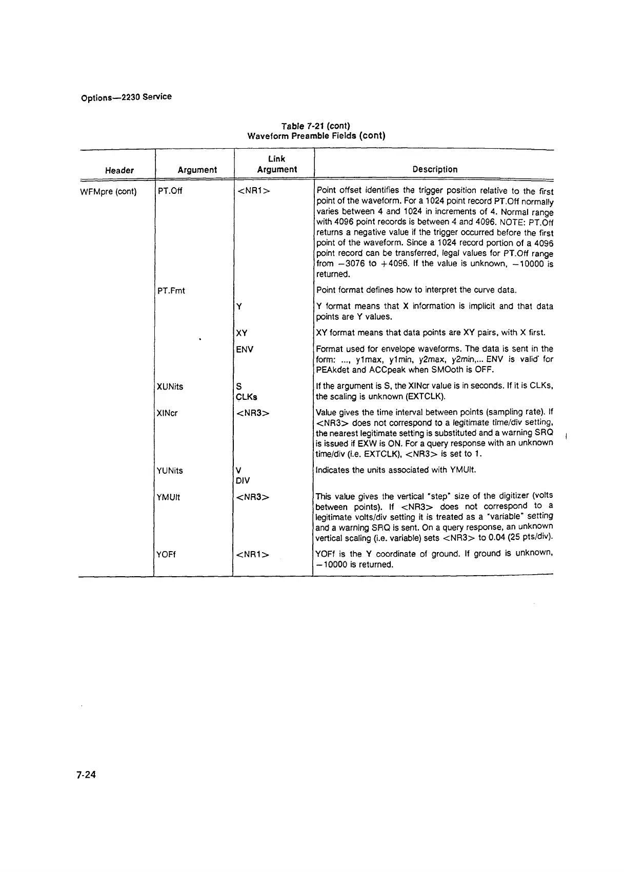 point of the waveform. For a 1024 point record PT.Off normally