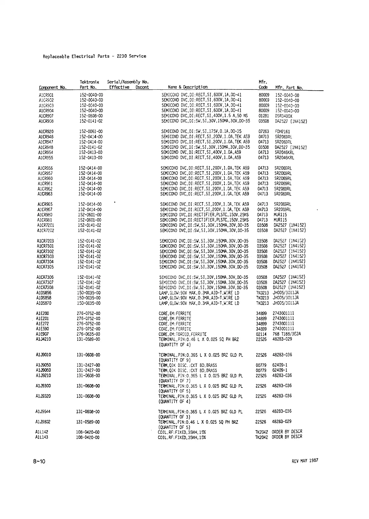 A1CR957 152-0414-00 SEMICOND DVC.DI:RECT,SI,200V,l.OA.TEK A59 04713