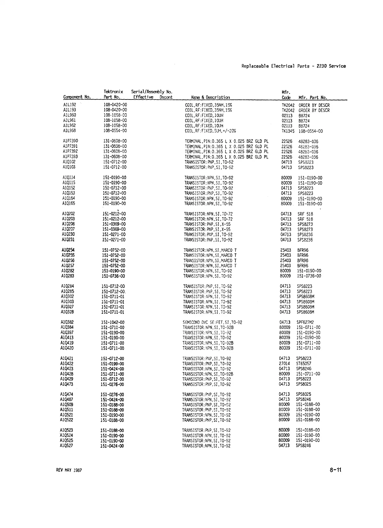 Replaceable E lectrical Parts - 2230 Service