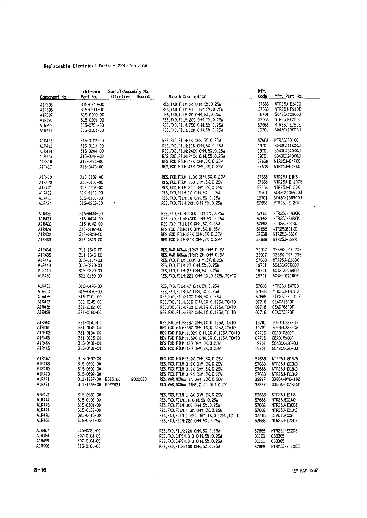A1R448 315-0270-00 RES.FXD,FI LM: 27 0HM,5%,0.25W