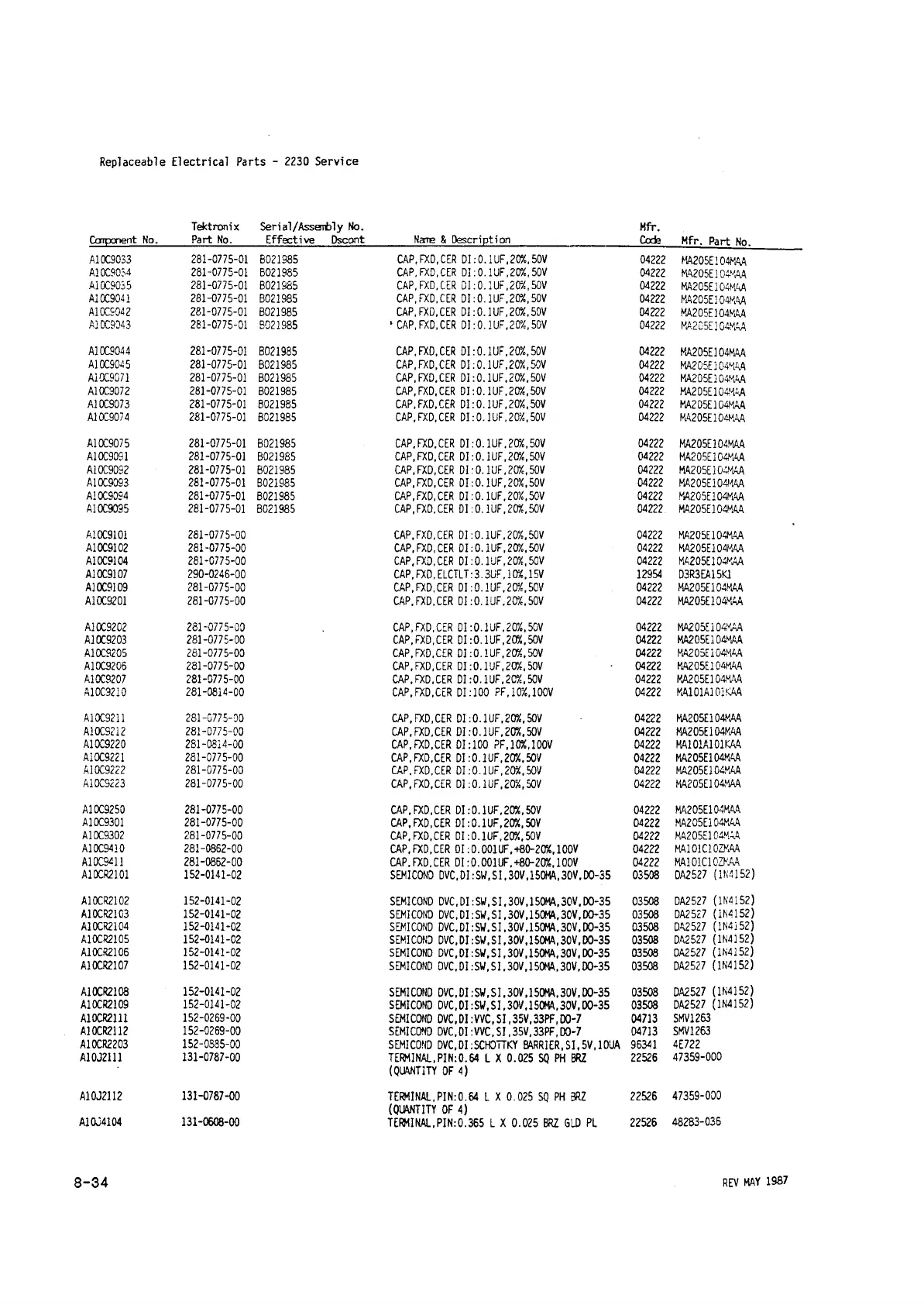 A1X9101 281-0775-00 CAP.FXD.CER D I:0 .1UF,20%,50V 04222