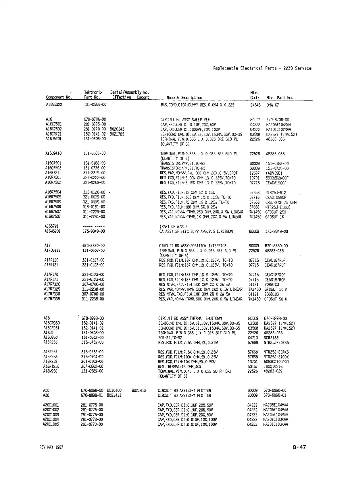 Replaceable E lectrical Parts - 2230 Service