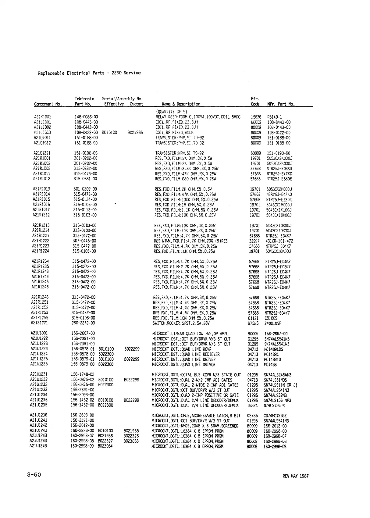 Tektronix Serial/Assembly No. Mfr.