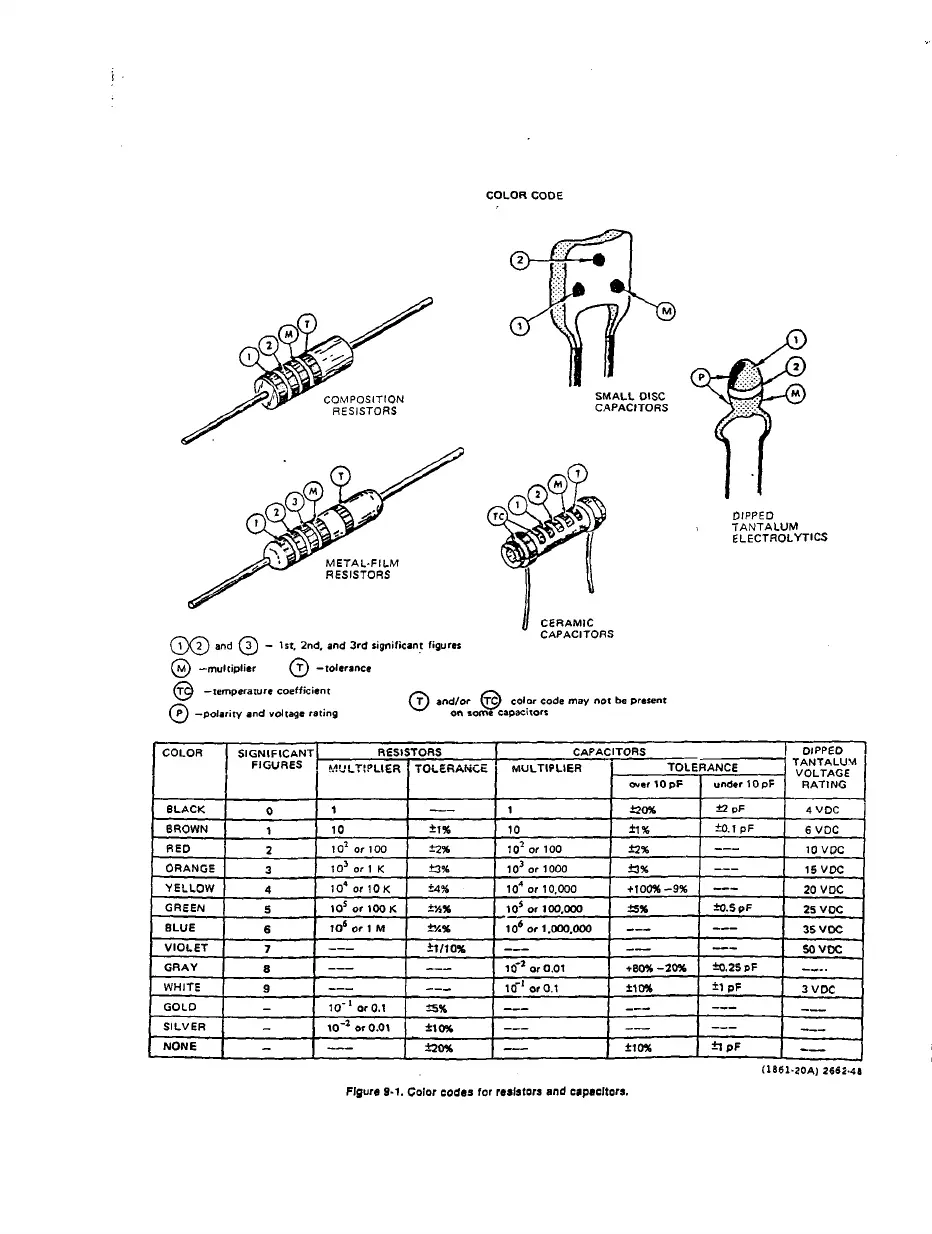 Figure 9-1. C olor c o d es for re sisto rs an d cap acito rs.