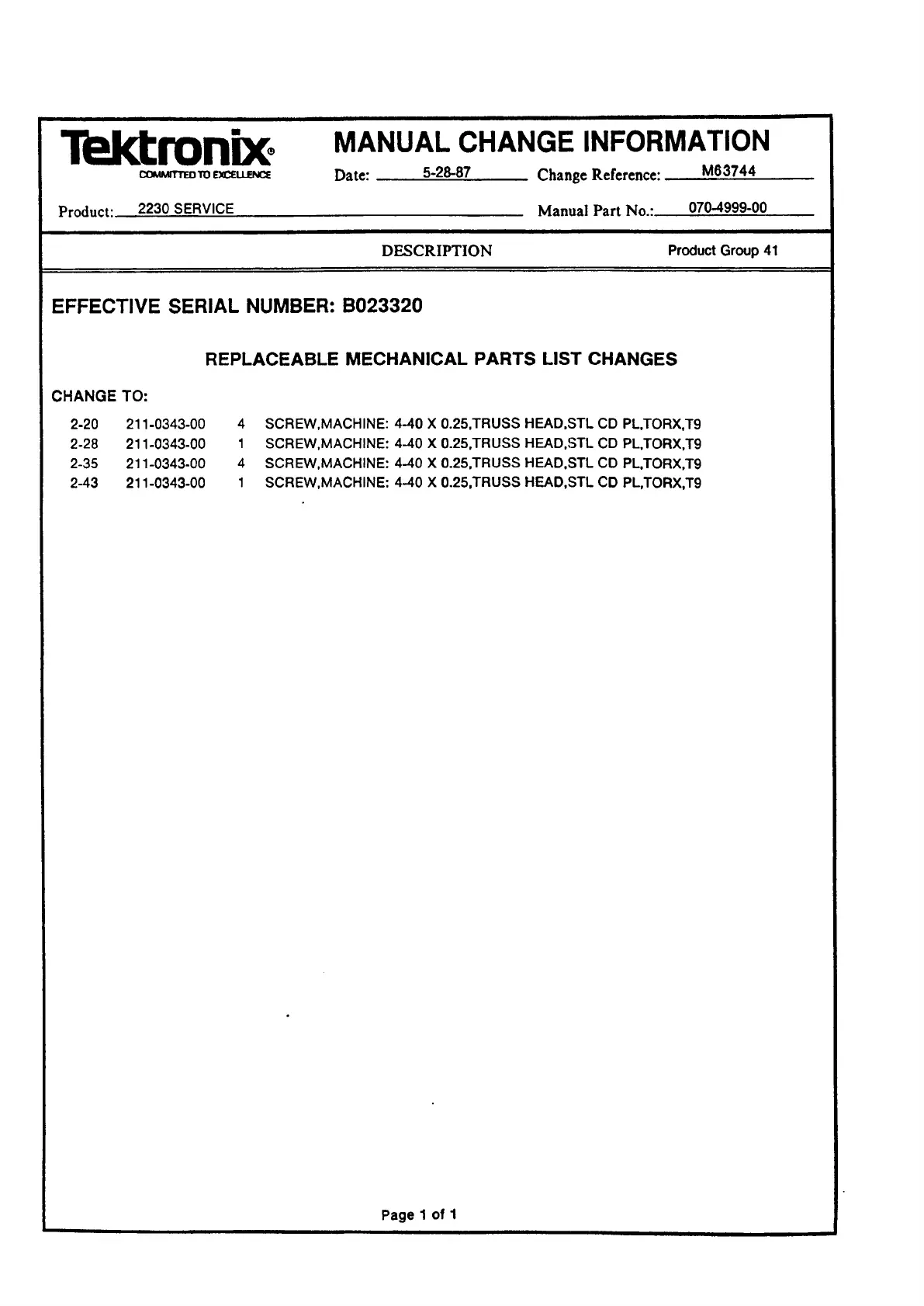 EFFECTIVE SERIAL NUMBER: B023320