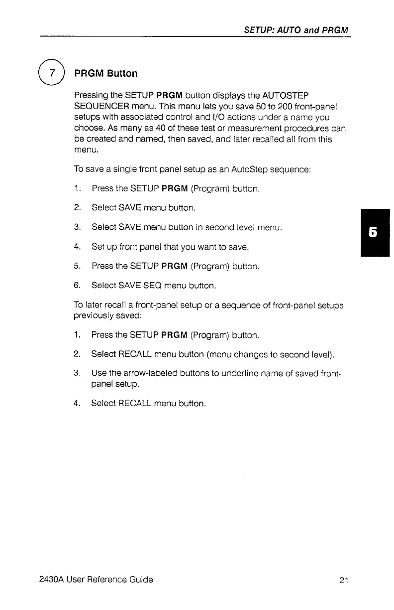 Tektronix 2430A - PRGM (Program) Button Usage
