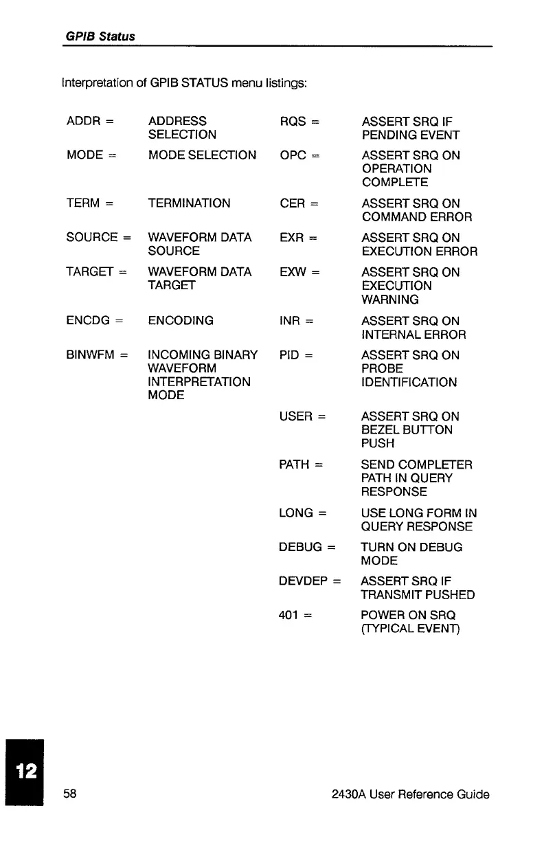 Tektronix 2430A - GPIB Status Listing Interpretation