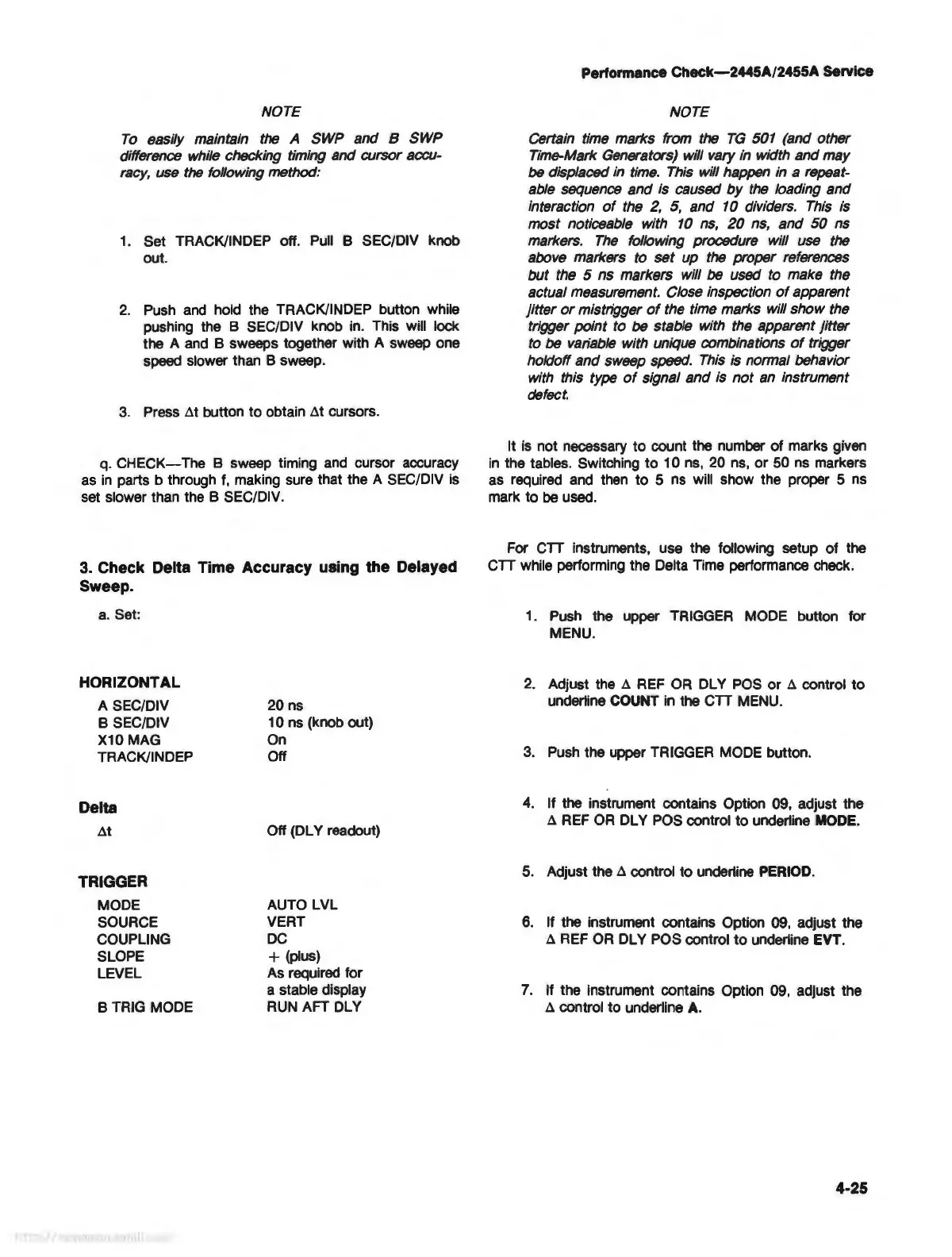 CTT while performing the Delta Time performance check.