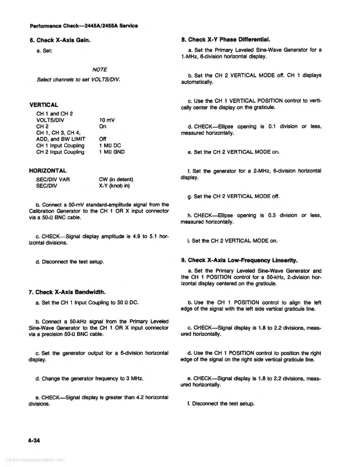 c. CHECK-Signal display is 1.8 to 2.2 divisions, meas-
