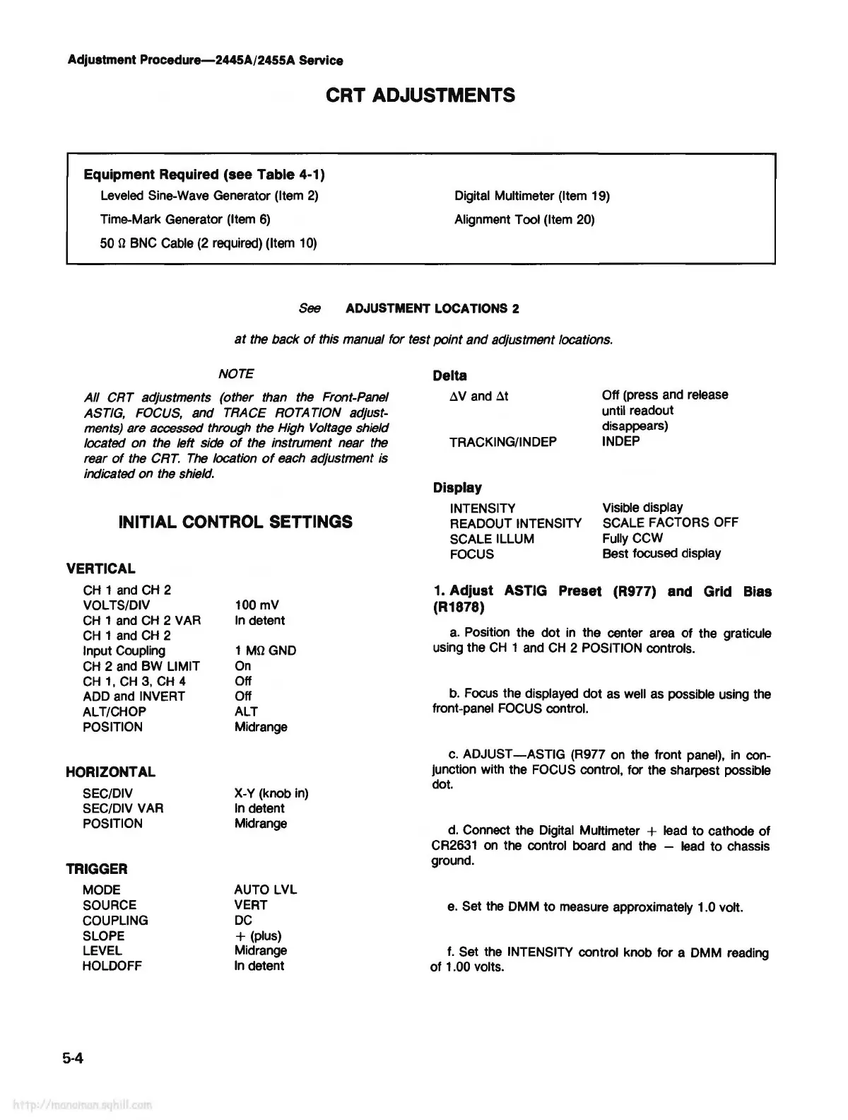 1. Adjust ASTIG Preset (R977) and Grid Bias