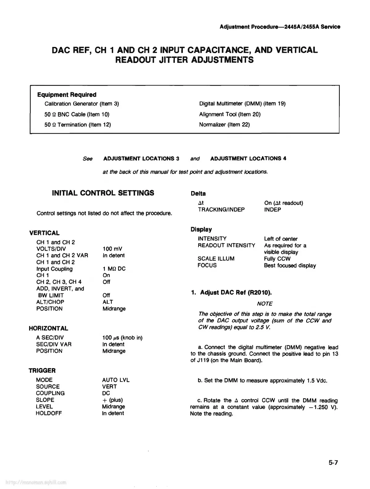1 AND CH 2 INPUT CAPACITANCE, AND VERTICAL